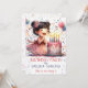 Kawaii Asian girl 5th Birthday cake candells name Invitation