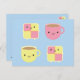 Kawaii Battenberg Cake & Cup of Tea Postcard