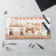 A cute desk mat with a barista bear illustration. It can be customized with a name or custom text/phrase.