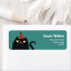 Cute, funny, cartoon, kawaii black cat with party hat colorful return address label for kids birthdays.