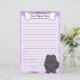 Cute Kawaii Pomeranian stationery has an adorable cartoon dog, in the black coat, in the lower right corner. Instantly customize this stationery by replacing "Your Name Here" inside the dog bone. The background is a light purple. Perfect for Pom owners!