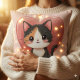 This adorable Valentine design features a sweet kawaii calico cat sitting happily before a glossy pink heart surrounded by playful floating mini hearts, creating a warm and joyful expression of affection. The soft pastel palette, rounded shapes, and gentle shading give the illustration a tender storybook feel, while the cat’s bright eyes, rosy cheeks, and tiny smile bring irresistible charm perfect for romantic gifting, friendship sentiments, or cute everyday moments. This cheerful character blends modern kawaii style with cozy warmth, making it ideal for anyone who loves cats, sweetness, and soft Valentine themes. AI generated artwork.