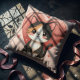 Kawaii Calico Cat Heart Valentine Design Throw Pillow