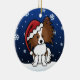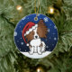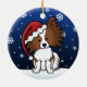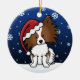 Cute Papillon Christmas Ornament, drawn in kawaii cartoon! This adorable dog breed is wearing a red Santa hat, and snowflakes are falling all around him. Absolutely darling, perfect for the dog lover's Xmas tree!