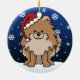 Cute Red Pomeranian Christmas Ornament, drawn in kawaii cartoon! This adorable dog breed is wearing a Santa hat, and snowflakes are falling all around him. Absolutely darling, perfect for the Pom lover's Xmas tree!
