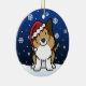 Cute Sable Sheltie Christmas Ornament, drawn in kawaii cartoon! This adorable dog breed is wearing a red Santa hat, and snowflakes are falling all around him. Absolutely darling, perfect for the dog lover's Xmas tree!
