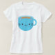 A blue cat-shaped cup of tea - or coffee - with a kawaii face.
