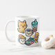 Adorable kawaii mug design with a smiling cat, bubble tea, pizza, sneakers, and coffee. Perfect for fun vibes and everyday cuteness. 🐱🍕🥤☕✨