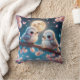 Kawaii Charming Birds under Moonlight Throw Pillow