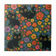 Kawaii Garden Art | Cute Black Cat Floral Pattern Ceramic Tile