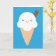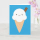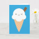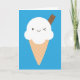 A classic British '99' vanilla ice cream cone with chocolate flake, kawaii style, on a bright blue background. The perfect sweet summer treat.