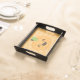 This is a well made, sturdy wooden tray with a flawless black finish and lovely map on the tray surface. It is both vintage & modern at the same time. Looks exactly like the photo; does not disappoint. So nice to find something of quality individually made and not the mass-produced 'shabby chic' merchandise seen in stores. I am so pleased to be able to give this to my college-age niece for her birthday. This can be used as a tray to hold jewelry or toiletries, or hung on the wall as art. The map surface is sealed (it is slightly shiny) so would be moisture resistant. It is well worth the asking price but I was able to apply a sale code as well. Very happy with my purchase. Map is crisp & clear and sealed with a water-resitant finish.