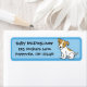Adorable Jack Russell Terrier address labels has a kawaii cartoon of the dog breed against a bright blue background. Change the information instantly with your own!