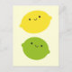 Cute citrus fruit. Kawaii lemon and lime on a pale yellow background. Perfect for summertime and the kitchen.