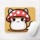 Cut adorable kawaii kitty white cat wearing a red mushroom on its head.