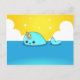 A sweet little blue kawaii narwhal swimming with a beautiful yellow sky behind him.