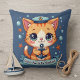 Kawaii Nautical Cat Sailing Anchor Pun Throw Pillow