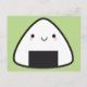 A cute happy Japanese onigiri rice ball with nori seaweed wrapping.
