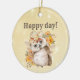 kawaii owl with warm leaves background ceramic ornament