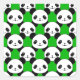A cute panda bear, kawaii cartoon style pattern. Original design in black and white with green background.