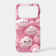 This phone case features a cute, playful, and charming 3D design of various pink clouds and marshmallow-like characters. The clouds have adorable, simplified faces showing different expressions, ranging from happy to sleepy, set against a vibrant pink background. It's a sweet, dreamy, and highly textured design perfect for those who love kawaii (cute) aesthetics.