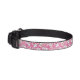 Good quality and fit is perfect for our Treeing Walker Coonhound/Beagle mix - about 45lbs and 15” neck. I wish it was pink all around (why I took off 1 star) but goid quality, printing! See above description - I added the flower to her collar in the photos