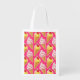 Kawaii pink pattern with strawberry ice cream grocery bag