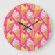 Waffle cones with strawberry ice cream scoops and frozen yogurt pattern