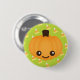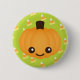 Cute Halloween pumpkin with a cute smile on its face, with candy corn in the background.