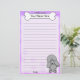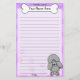 Fun Kawaii Silver Poodle stationery with a cartoon dog breed in the lower right corner. The top portion can be instantly personalized with your name inside the big doggie bone. Border and paper background are purple. Other coat colors available. Cute toy, miniature, or standard poodle stationery!