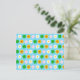Repeat pattern with rows of happy kawaii sakura cherry blossoms, daisies, sunflowers and clover on a sky blue background.