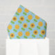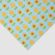 A repeat pattern of cute happy Sunflowers against a blue sky.