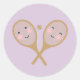 Kawaii Tennis Rackets Happy Face Cute Lavender Classic Round Sticker
