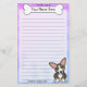 Fun Kawaii Pembroke Welsh Corgi with a cartoon dog breed in the lower right corner. The top portion can be instantly personalized with your name inside the big doggie bone. Border and paper background are a pretty purple fade to blue. The dog's coat color is tri color (black & tan).