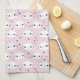 Kawaii White Cat Face Pattern on Pink Kitchen Towel