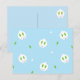 A kawaii take on the traditional Japanese snow rabbit with leaf ears, berry eyes and a cute twig mouth on a winter blue background.