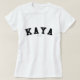 Kaya! Is your name Kaya? Or do you have a wife, girlfriend, female family member or female friend named Kaya? If so, this "Banner" shirt is exactly the gift that you're looking for! The design features "Kaya" in arched black lettering across the chest in the classic College font.