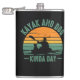 Well made flask, a little better than I had expected. Flask came in clear plastic box which gave it a nice presentation when I took it out of the zazzle packaging. Image is not printed on flask but on sticker. Don't know how this will hold up I haven't used it yet. This would make a Great gift! I plan to purchase more for friends! Cheers. I thought a little brighter than computer. Very crisp, writing wasn't