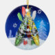 Lightweight, smooth, pure white ornament with nice sheen. Perfect size to be seen from across the room ... and to attract closer inspection! Price was great for ordering enough for the whole family! Clear, bold black design just as requested. Matches the order exactly. Just so nice!