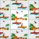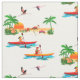 An adventure seeking couple kayaking in the tropic is featured on this brilliantly colorful fabric. It will inspire an endless variety of projects to remind one of happy Summer days spent on the beach or times cavorting in the islands.