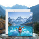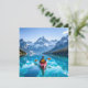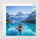A beautiful blank card to keep in touch with family and friends with a picture of a man kayaking in the ocean by the snow topped mountains.