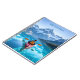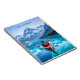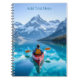 Personalized Notebook with an illustration of a man kayaking in the ocean by the snow topped mountains. Pretty serene blue tranquil water and pine trees surround him on a peaceful journey.