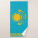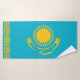 The Kazakhstan flag is a blue field with in the center a sun and an eagle and on the a national ornamental pattern. The used colors in the flag are blue, yellow. The proportion of the Kazakhstan flag is 1:2. The Flag of Kazakhstan was adopted in 1992. The first use of the current flag design was in 1992. The last change to the current Kazakhstan flag design was in 1992.