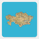 This sticker displays a map of Kazakhstan centered over a flag-color background. An eyecatching design to help promote Kazakhstani culture.