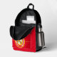 Backpack red with red, white, black and gold concentric-circles design with "GO CHIEFS!!! KANSAS CITY, MISSOURI CENTER OF THE UNIVERSE" "HEY BABY!!! SUNNY & RAYRAY BEAM THE SUNSHINE BROTHERS" with a picture of Sunny and RAYRAY BEAM. This design is a shout-out to Kansas City, Missouri home of the Superbowl Champions.