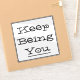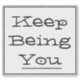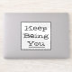 Display "Keep Being You" motivational phrase on any flat surface like binders and laptops. Black lettering and black border on white background.