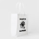 Carry a reminder with you to stay upbeat and busy, in the shape of a reusable grocery bag featuring my busy bee cartoon. Use "Personalize this template" to change the text if desired; text changes are reflected on both sides. Drawn to motivate myself, loosely based on a buddhist idea (or bee-losophy) that we find happiness in the process of doing things rather than getting the end goal or prize. "Don't worry, bee happy" might be popular alternative text.