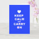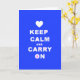 Keep Calm and Carry On in Pop Art Style. Blue background.