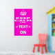 Classical Poster Featuring the popular crown and the words Keep Calm And... Add your own Message! Change the <text> to your own unique message. Customize this Poster to any size, and change the background color to suit your needs