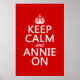 This reads Keep Calm and Annie On, in the style of the classic keep calm poster. It makes a range of different and fun gifts for any Annie in your life, perfect for birthdays and christmas gifts with that personal touch. It's also popular for bachelorette and hen parties.